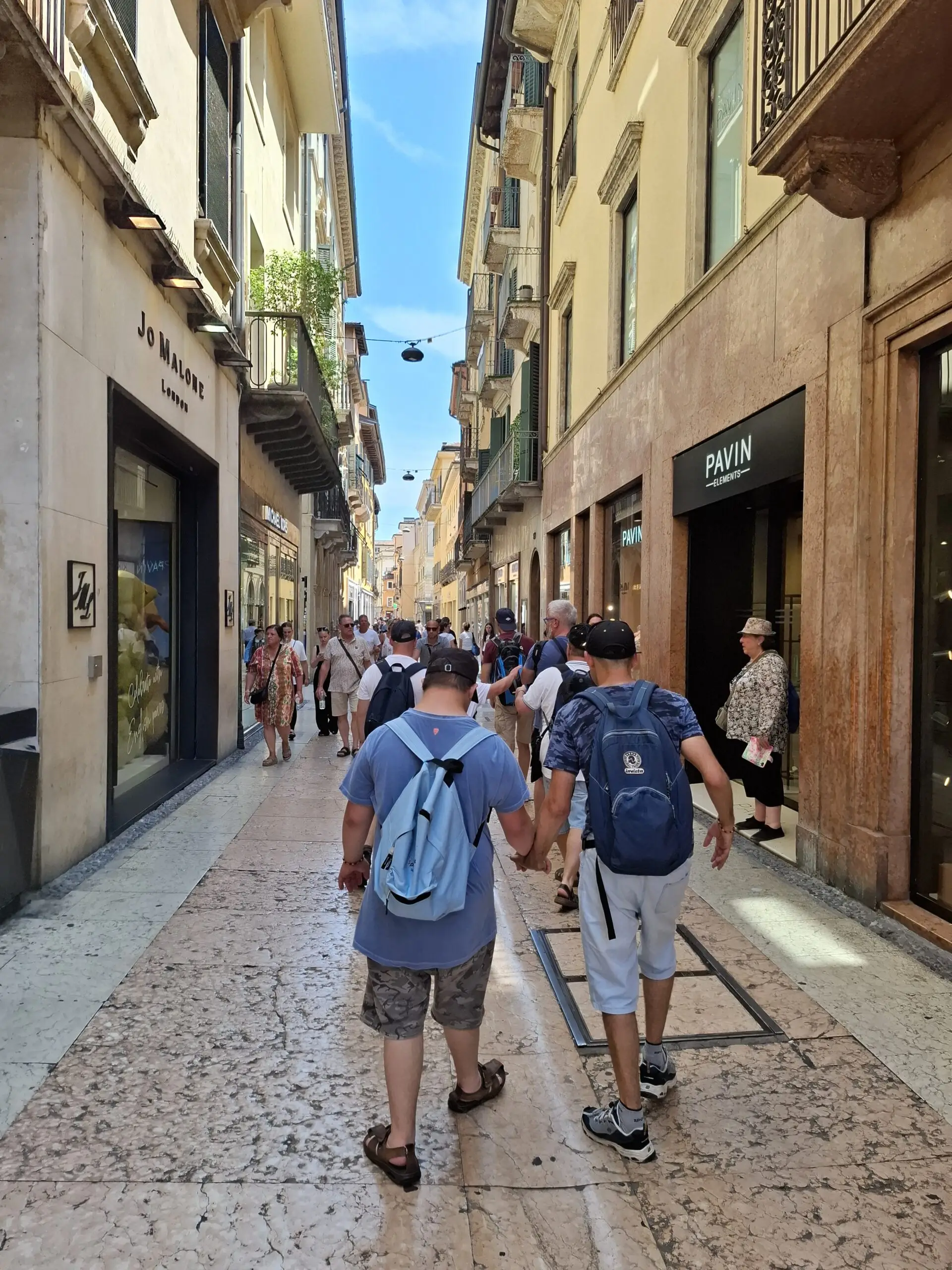 La nostra avventura è iniziata con una sosta a Verona, per spezzare il viaggio verso Jesolo. Dopo una passeggiata nel centro storico, una vista all’Arena e al famoso balcone di Giulietta, ci siamo concessi un pranzo al sacco in un parchetto. E con grande sorpresa… abbiamo incrociato anche gli amici del Gruppo Villa, diretti nella nostra stessa meta!